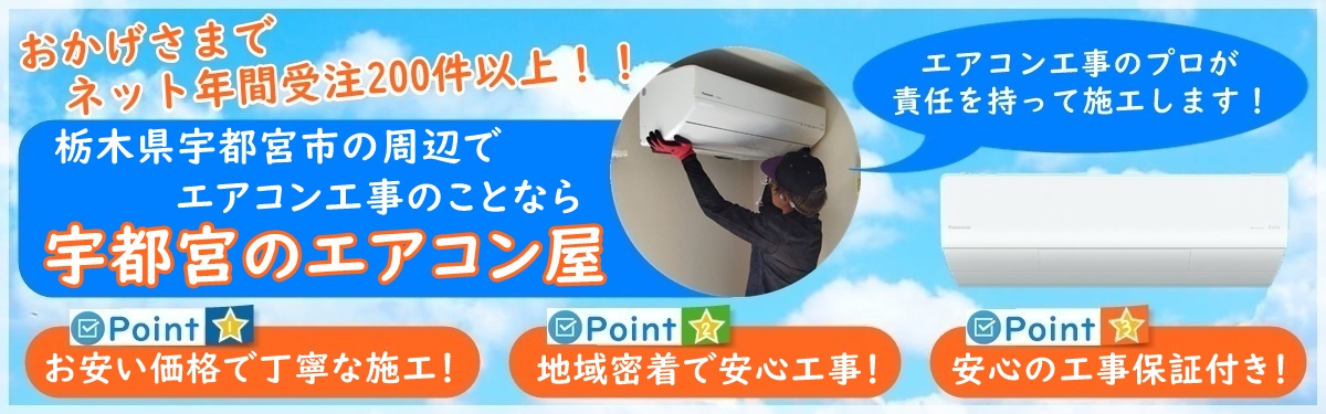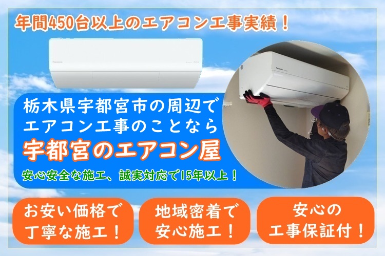 宇都宮のエアコン屋は家庭用のエアコン工事を主にエアコン取り付け・取り外し工事をおこなっている地域密着のエアコン業者で、宇都宮市を中心に栃木県で活動しております。